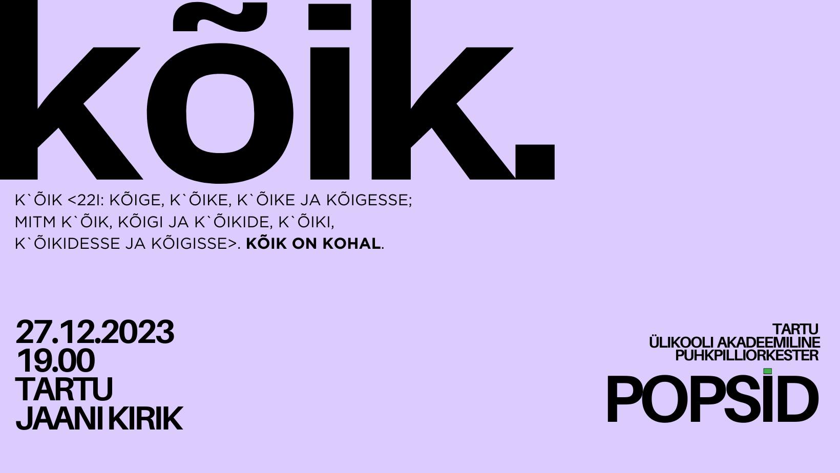 27. detsembril kell 19 Tartu Jaani kirikus